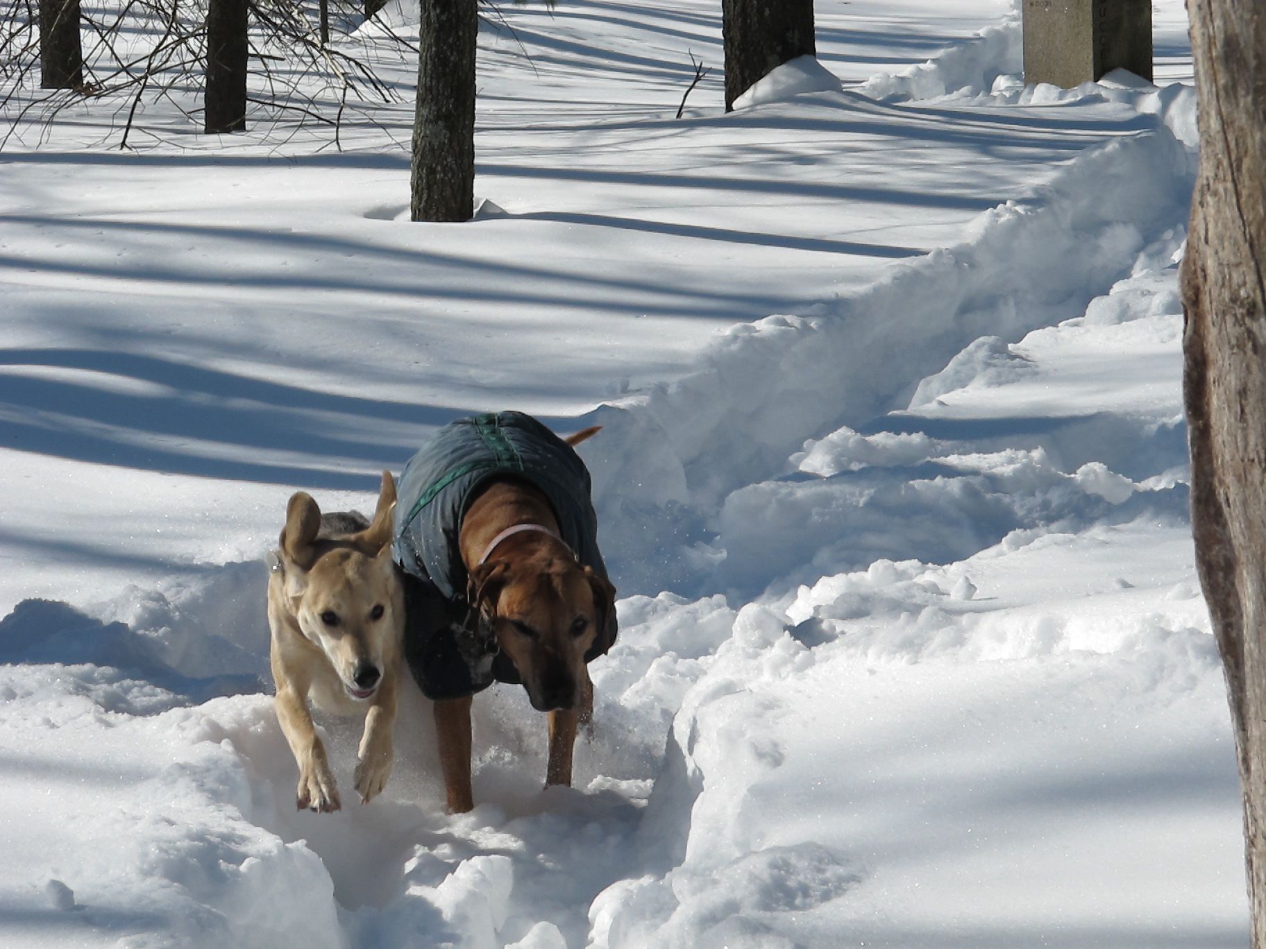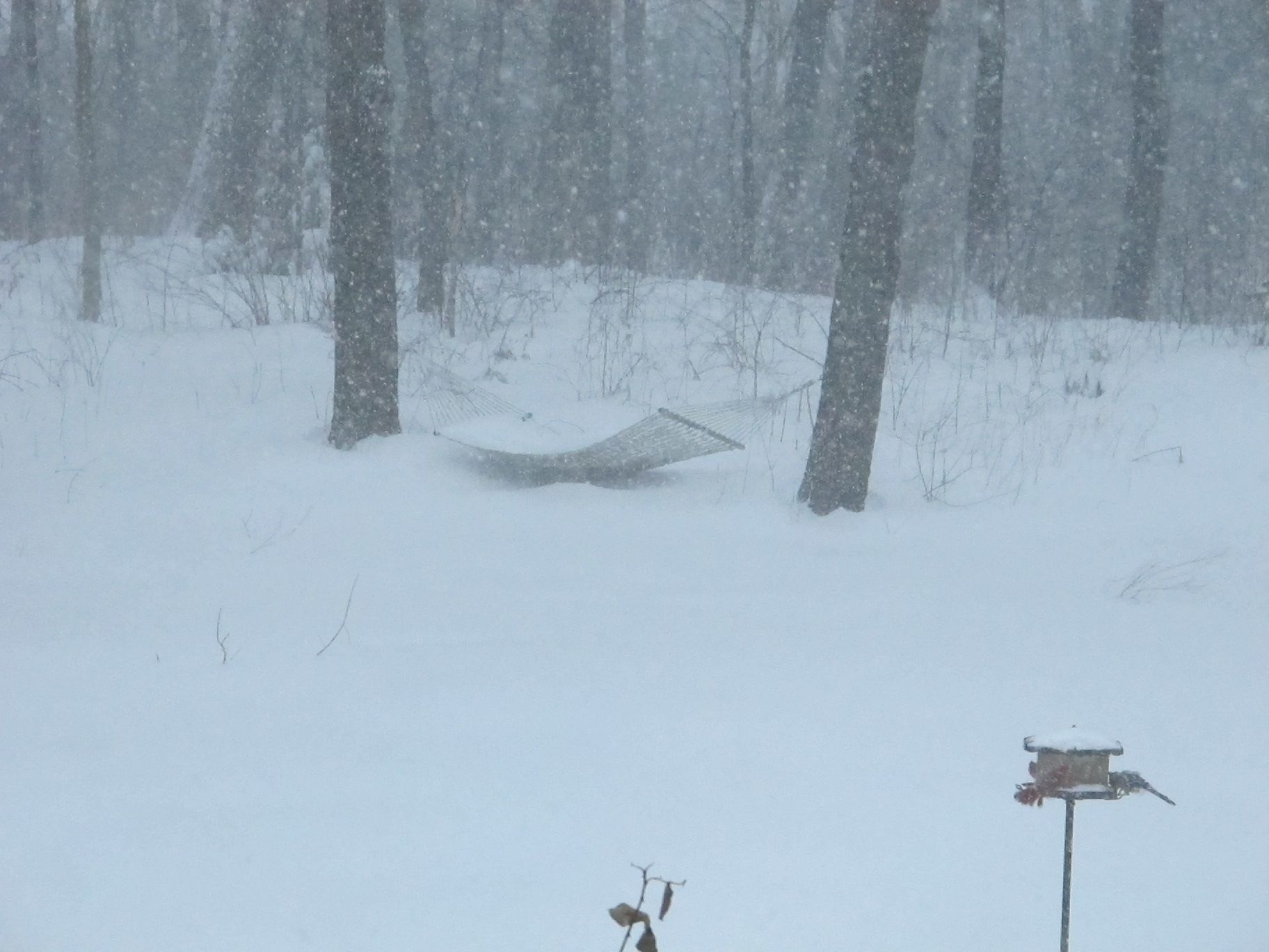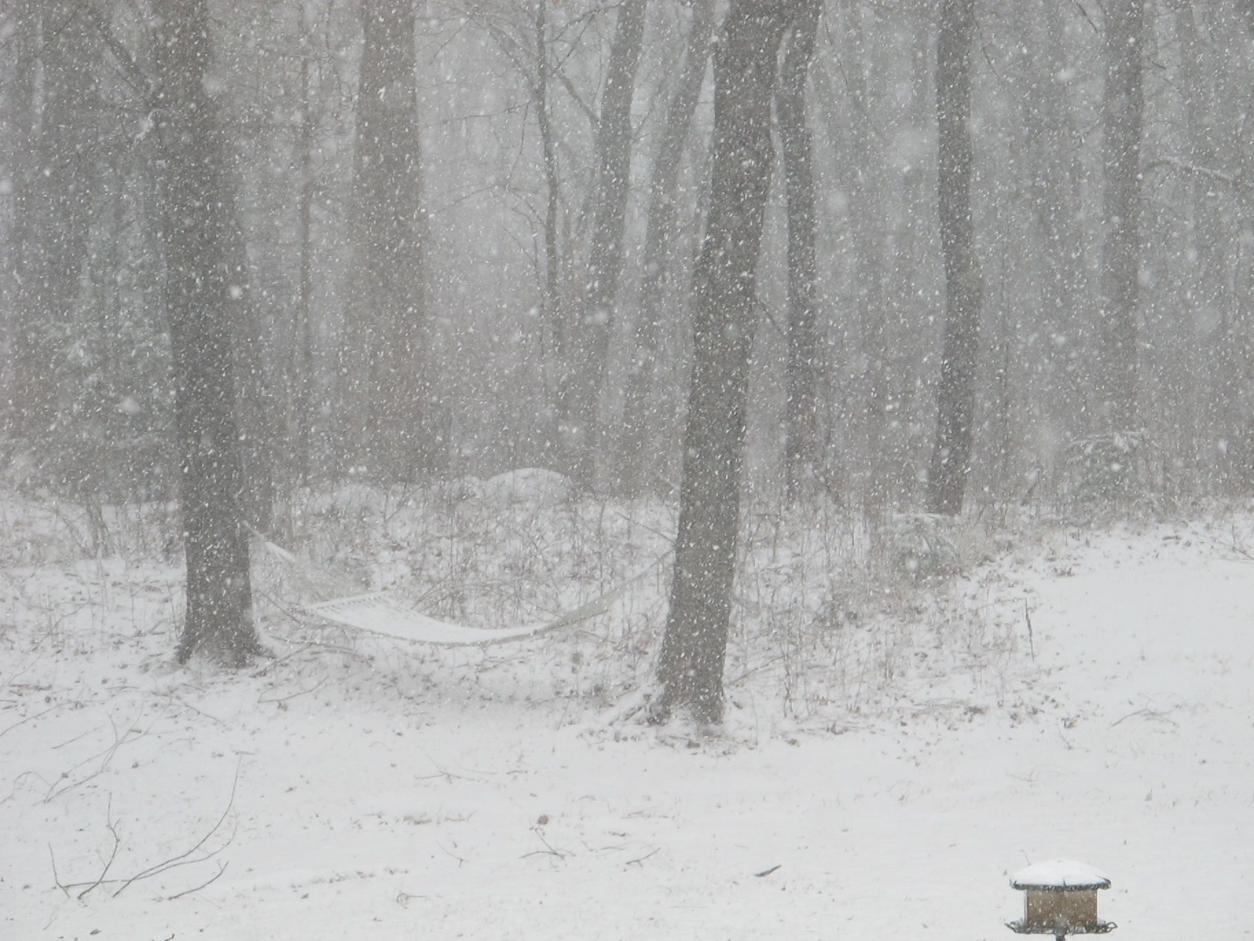 It’s another snowy Monday in the neighborhood. The weekend’s storm only left a few inches, but it’s sticky stuff. It clung to tree branches and blackened their trunks with its wetness.