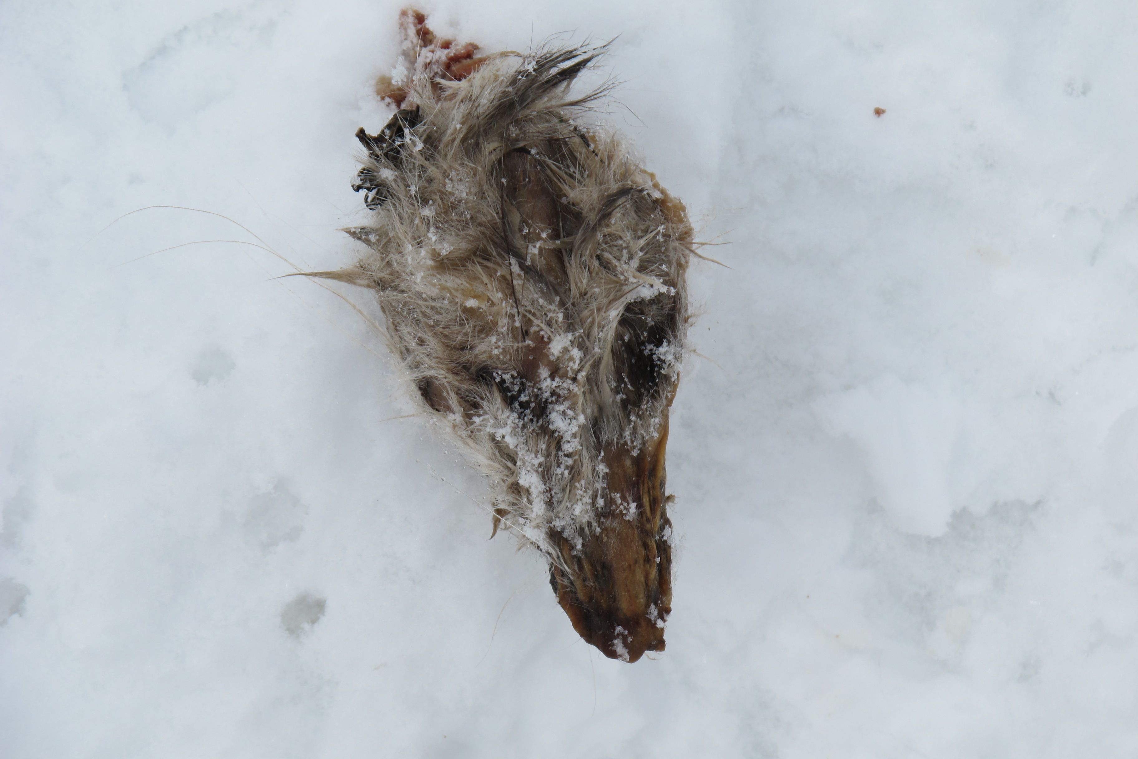 Paul told me that he had spotted a set of lone paw prints, unaccompanied by human boot tracks. A coyote must have captured the unlucky possum.