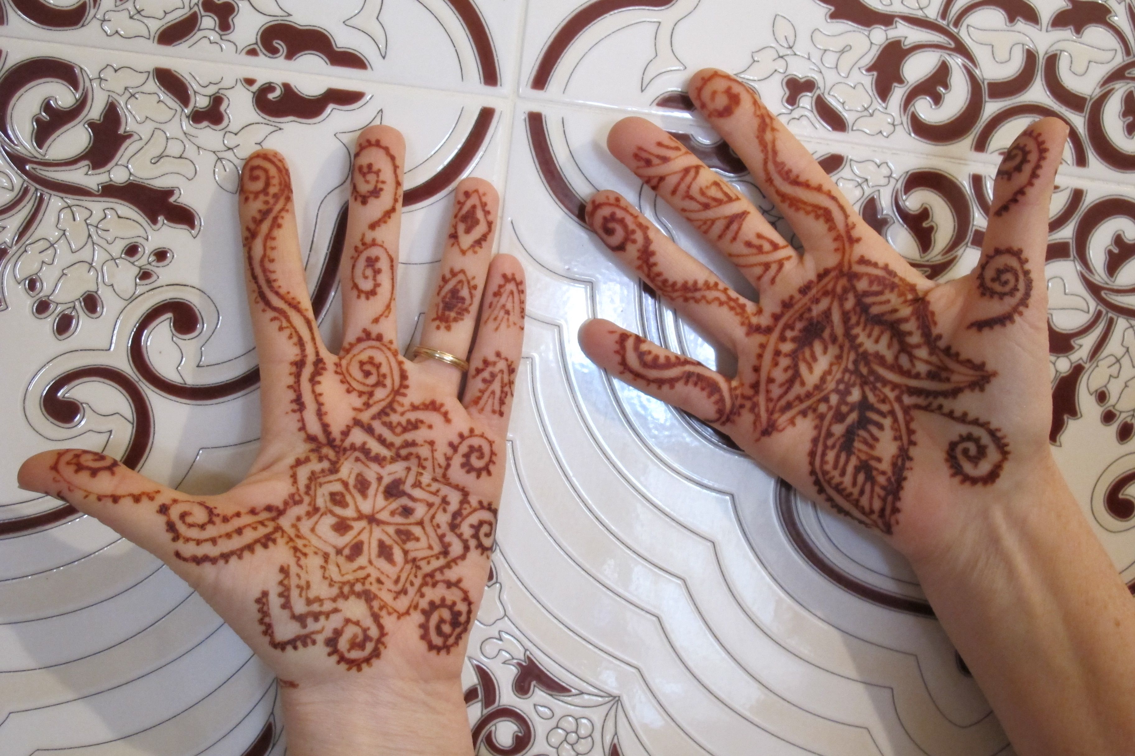Laila, who speaks a little French, was decorating my hands with henna. Rachida, who had her young daughter in tow, spoke to me in English. The rest, friends and relatives of my son’s landlady, chattered away in the local Berber dialect.