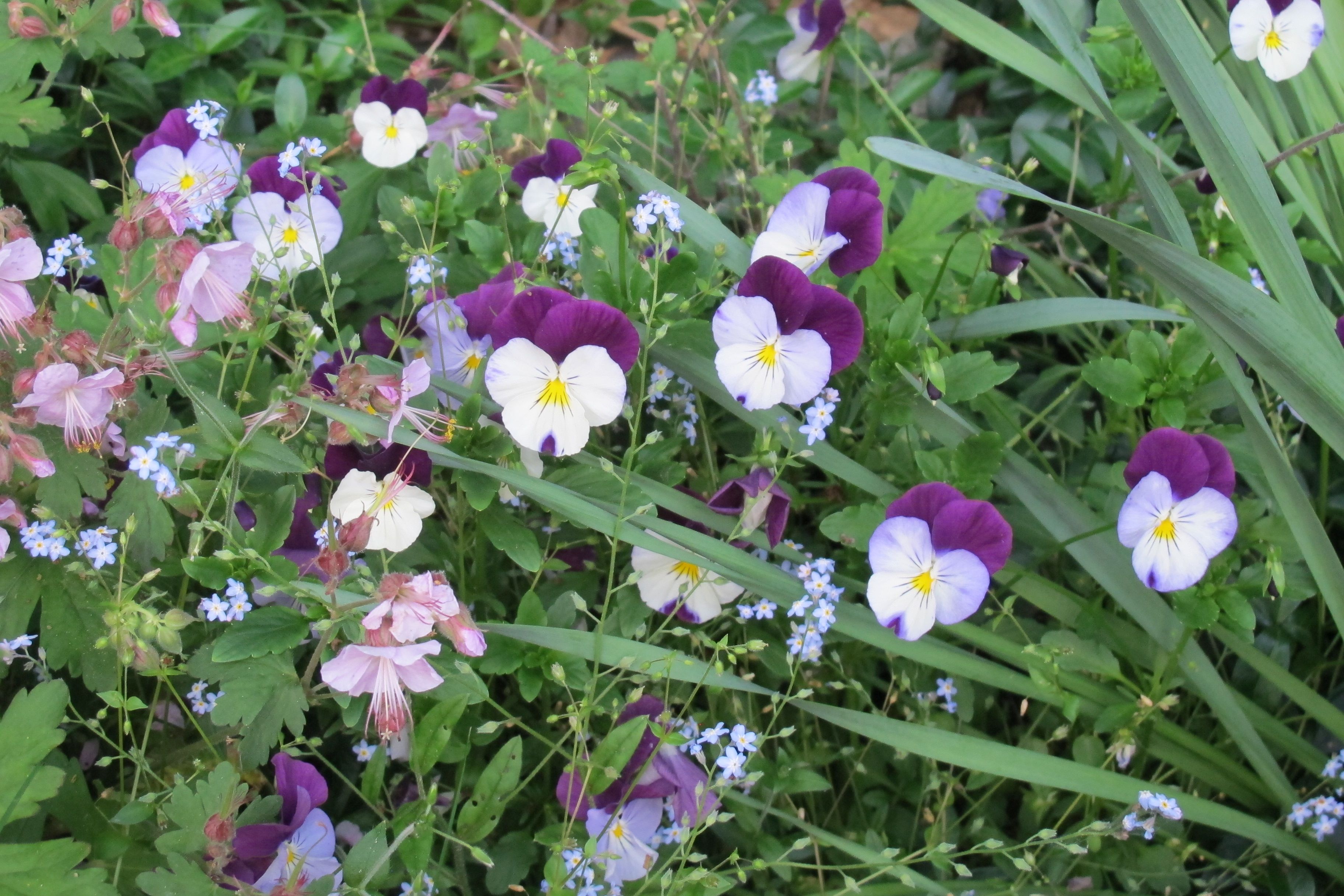 And these pansies ….. I planted them by Boots’s grave last fall and, surprisingly, they came back after the winter’s cold and snow. It feels as if Boots is giving us a little wave. Pats to you, dear Boots.